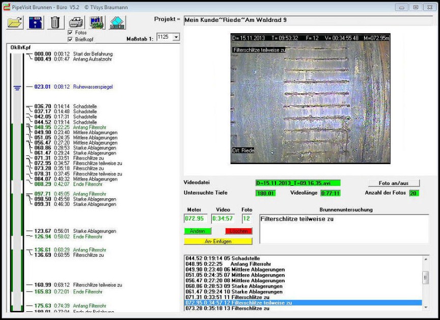 Borehole camera inspection software. Picture 1 - TVSys Braumann borehole, water wells, pipe, tank, mine, downhole and underwater cctv video camera inspection systems manufacturer from germany
