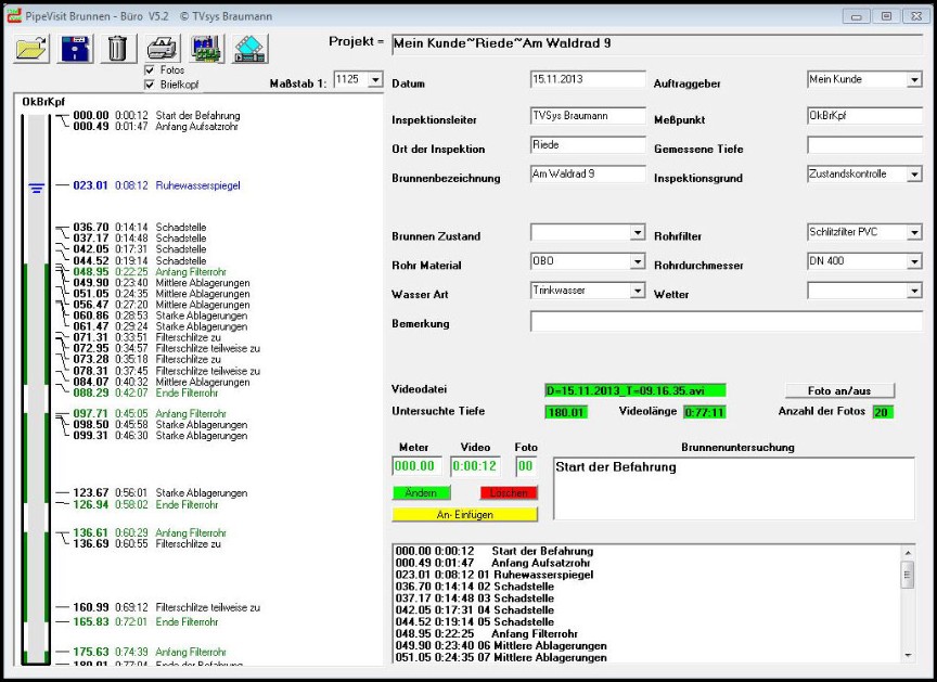 Borehole camera inspection software. Picture 1 - TVSys Braumann borehole, water wells, pipe, tank, mine, downhole and underwater cctv video camera inspection systems manufacturer from germany